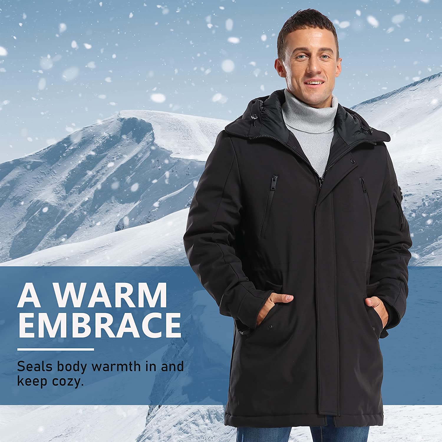 Windproof Design: 1. Adjustable velcro cuffs and stretchable glove with thumb hole help seal in warmth; 2. Detachable storm hood, stand collar, and full zipper closure, all the well-designs keep out the wind effectively; 3. Wear a resisting soft shell that is highly windproof and warm.