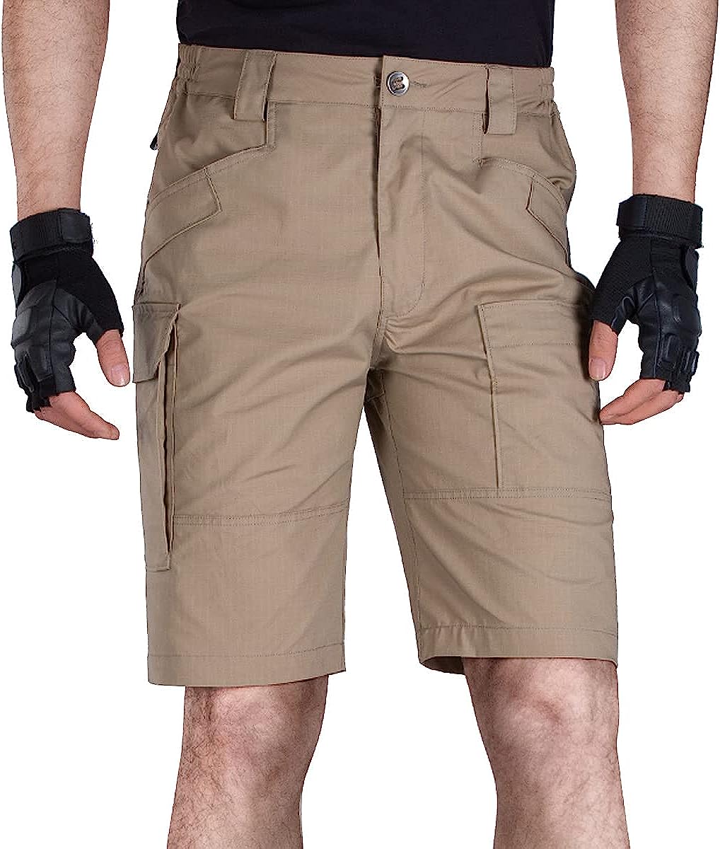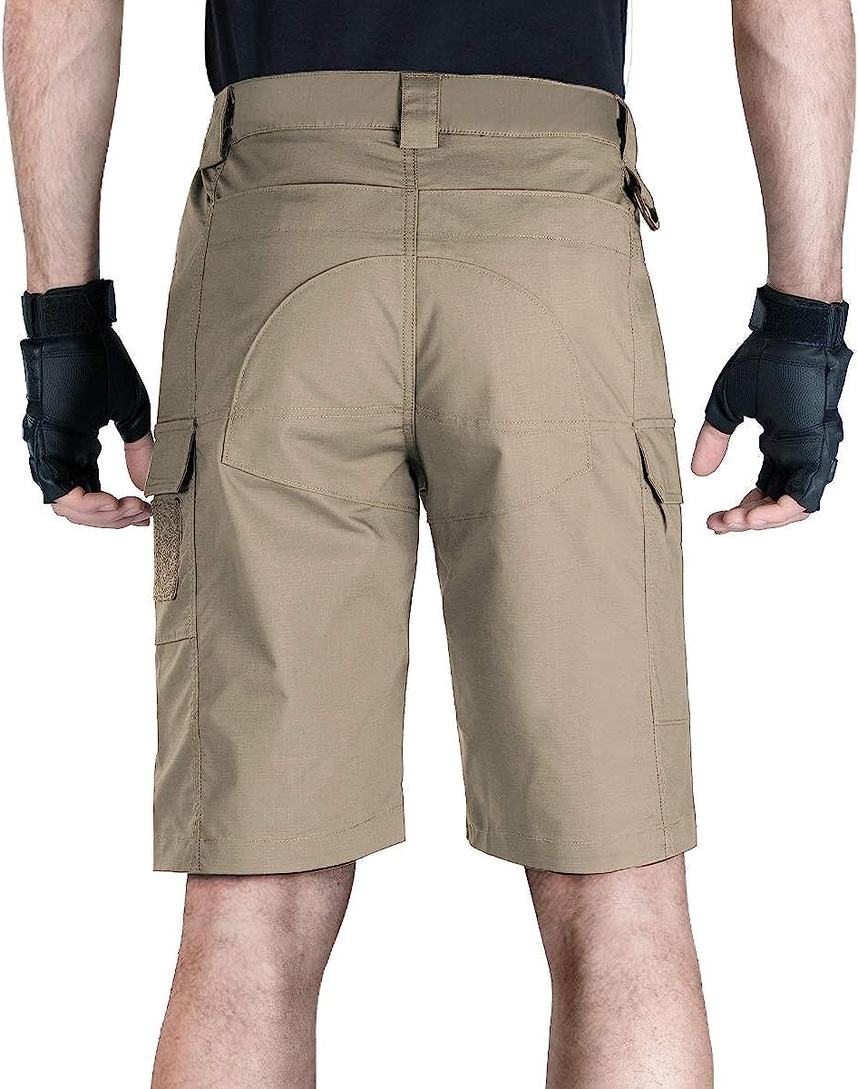 Upgrade Details - Mens tactical shorts with heavy duty metal button closure and YKK zipper fly, much solid and convenient. Partial Elastic Waist with Widen Belt Loops fit for ultimate flexibility, can be used for the belts of different widths. Duraflex D-rings for hanging tactical items or key ring.